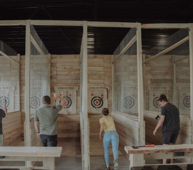 Installé à Grande-Synthe, près de Dunkerque, le centre de lancer de hache propose un décor d’inspiration canadiennes, avec un bar à bières de bûcheron et des planches à dipper pour prolonger l’expérience. L’ambiance y est à la fois cosy et authentique, idéale pour s’évader du quotidien et vivre une activité hors du commun.